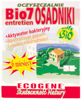 Bio7 Entretien jest mieszanką starannie wyselekcjonowanych naturalnych szczepów bakterii, drożdży oraz enzymów przyspieszających neutralizację i rozkład ścieków. Działa natychmiast i utrzymuje stałą aktywność flory bakteryjnej w osadniku - preparat zostaje nawodniony i natleniony w kontakcie ze ściekami w instalacji kanalizacyjnej. Bio7 Entretien zawiera wzmocnione mikroorganizmy i witaminy stymulujące ich wzrost. Dzięki temu proces oczyszczania zachodzi szybko, bakterie są żywotne i skuteczne.