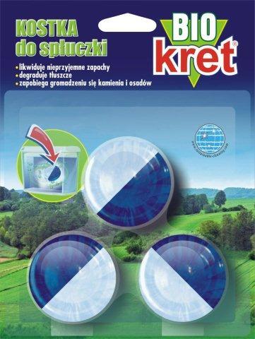 Posiada właściwości zapobiegające tworzeniu się kamienia i osadów zarówno w zbiorniku spłuczki jak i w muszli. Dodatkową zaletą kostki Bio KRET jest fakt, że zawarte w niej niepatogenne bakterie wspomagają działanie przydomowych oczyszczalni ścieków, oraz zapewniają prawidłowy przebieg procesów biologicznych w osadnikach.